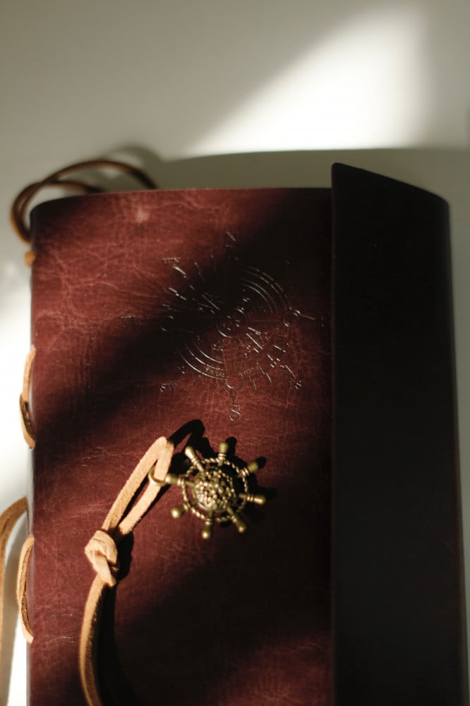 مفكرة أو دفتر ملاحظات بغلاف جلد