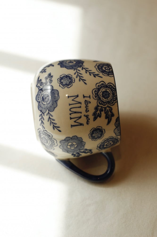 كوب كلاسيكي بطبعات زهور بلون أزرق