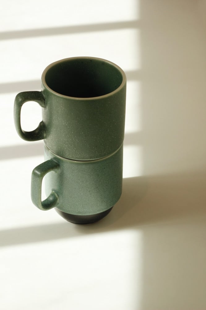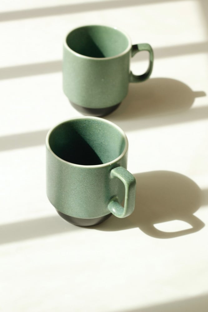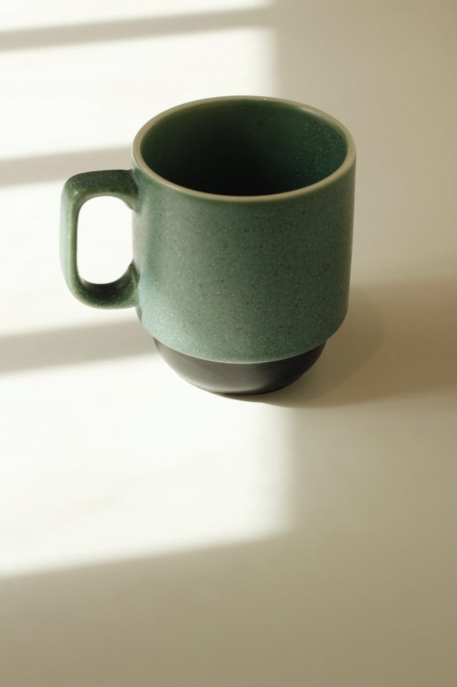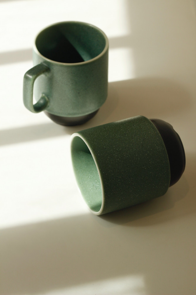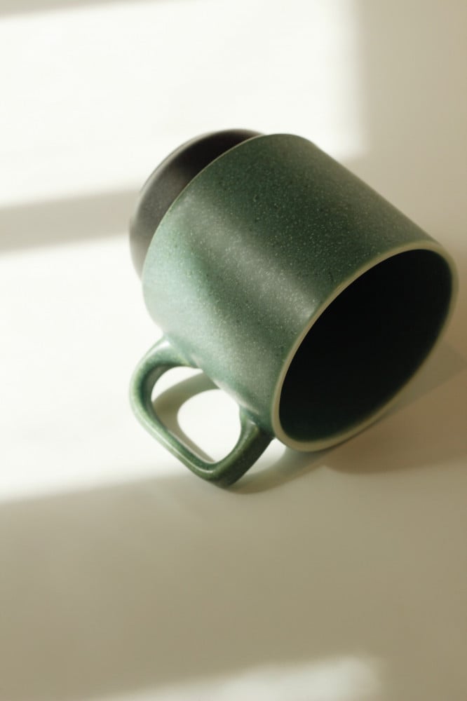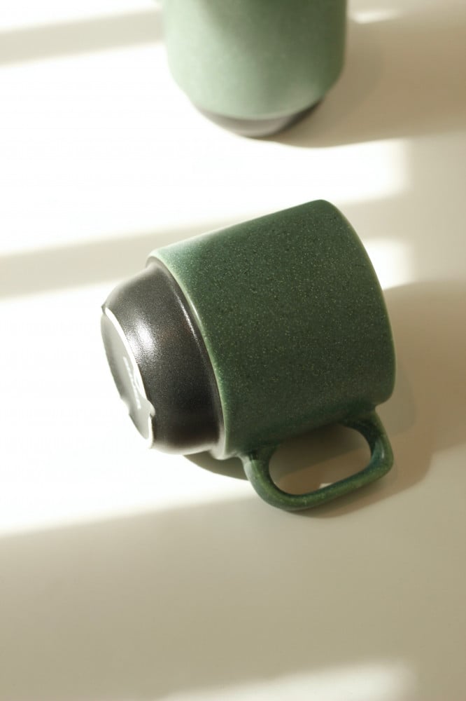 كوب سيراميك بلون أخضر وقاعده بلون أسود