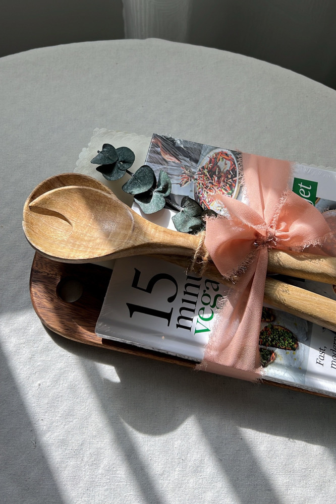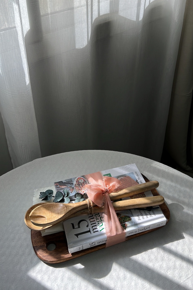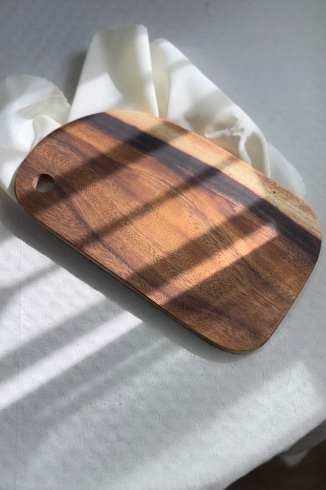 تحتوي على لوح تقديم من خشب الأكاسيا.. ملمس ناعم ومخملي،
