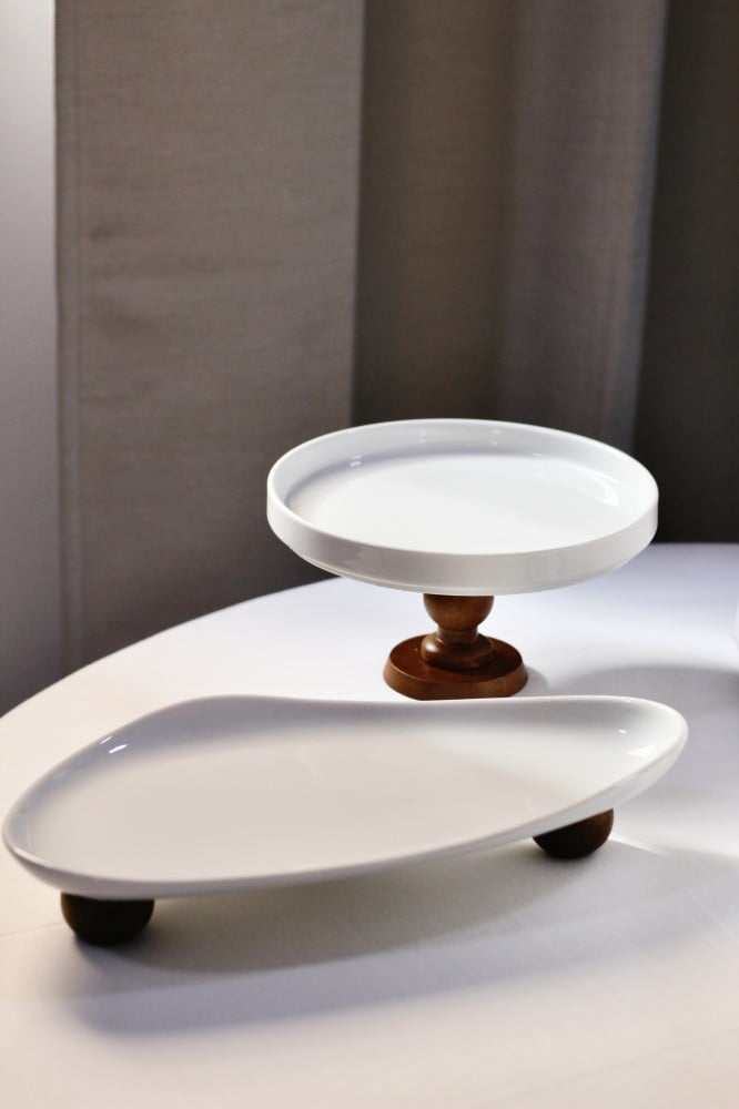 استاند سيراميك بأرجل خشب ذات شكل كروي