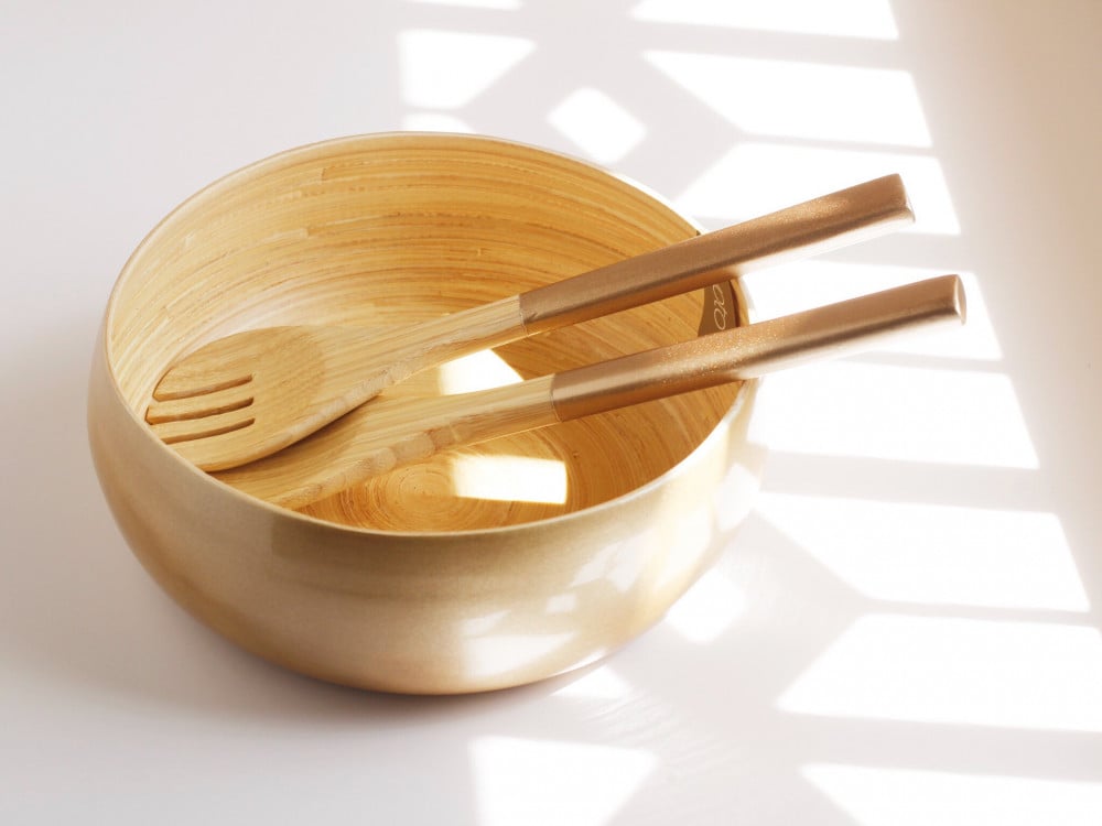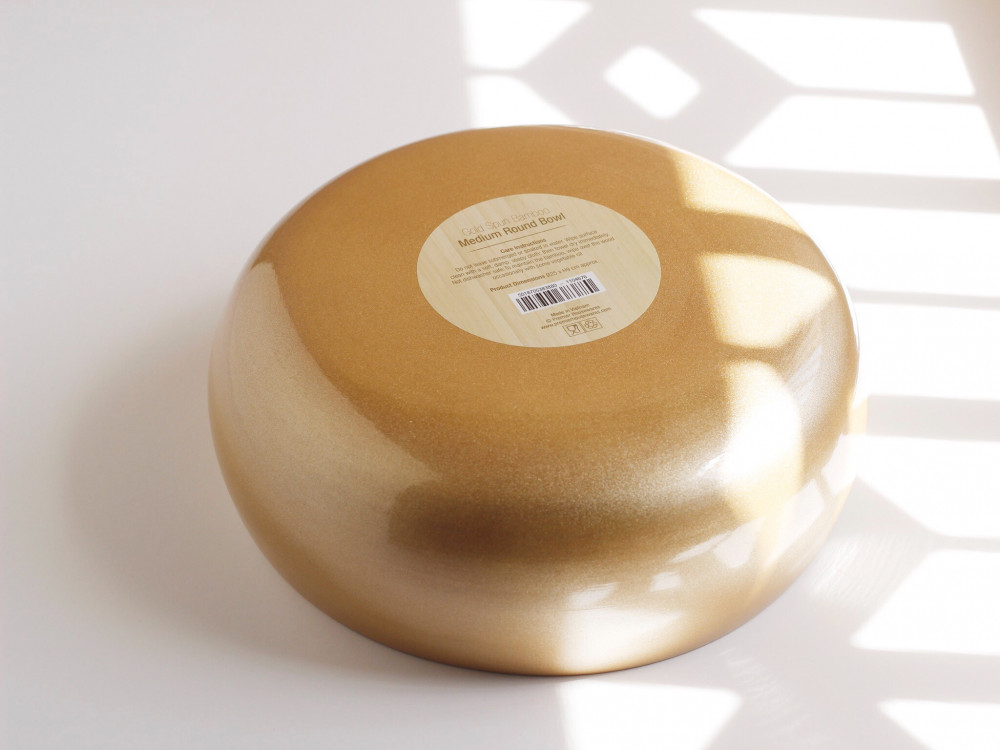 وعاء تقديم من الخيزران بلمسة خارجية نهائية من المعدن باللون الذهبي