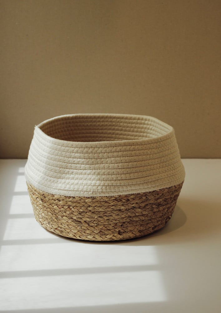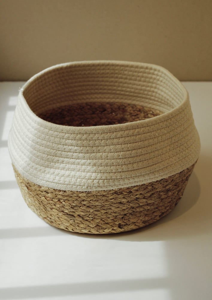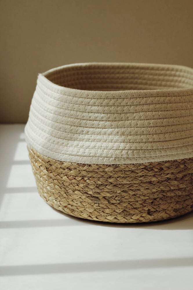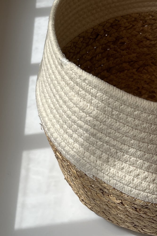 سله مصنوعه من القش البحري الطبيعي والحبال القطنية بلون اوف وايت