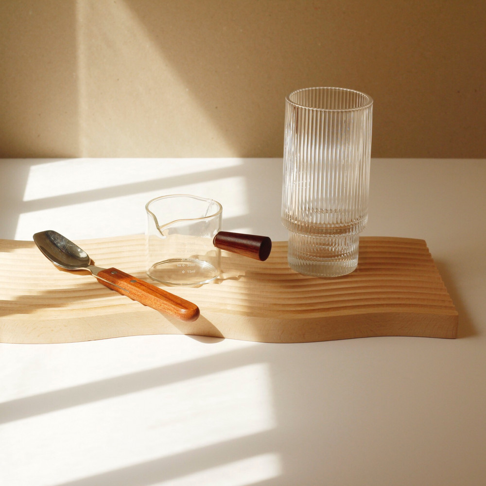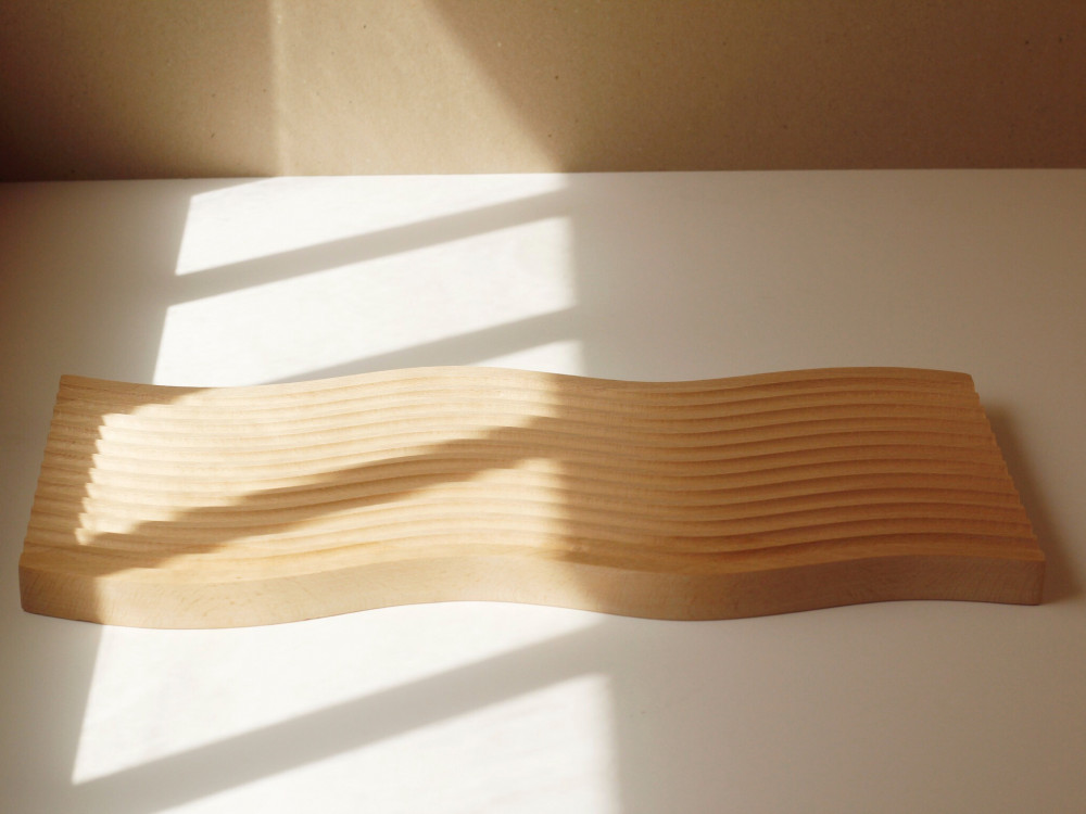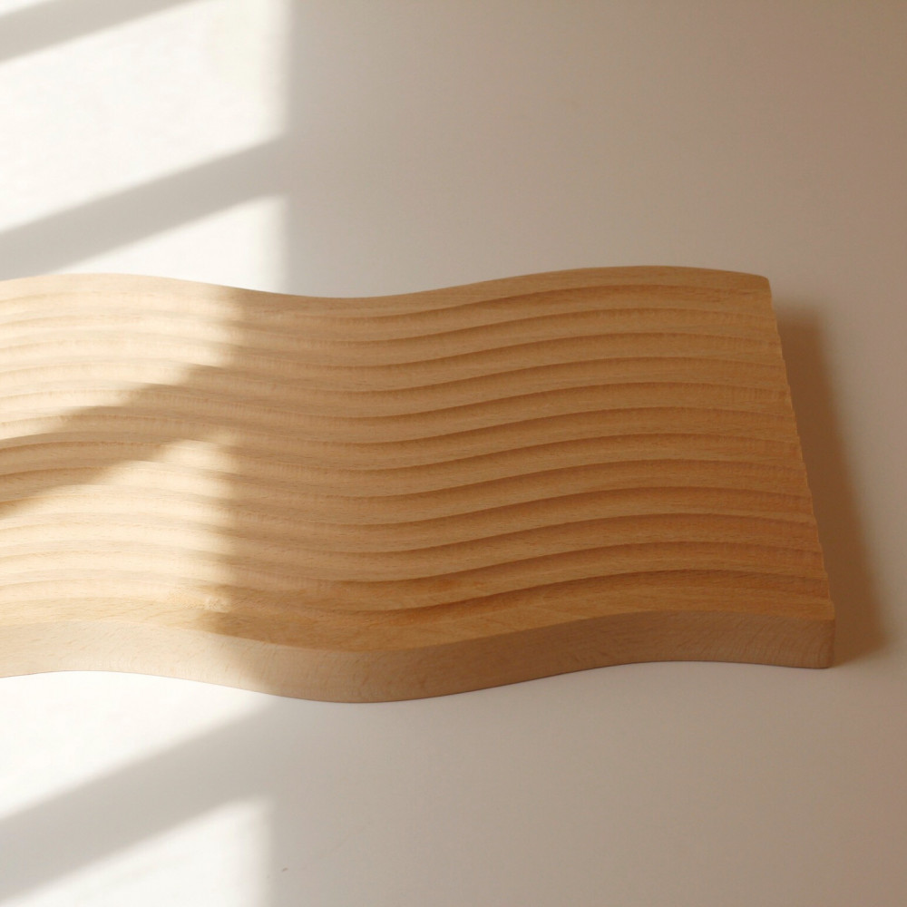 صينية تقطيع/ تقديم من خشب الزان على شكل موج الماء.